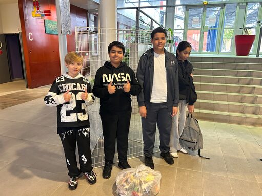 Lundi 24 novembre 2025, 4 écodélégués, M. Varbedian et M. Deschamps ont ramassé des déchets dans la cour et le plateau sportif (cour des 6ème).