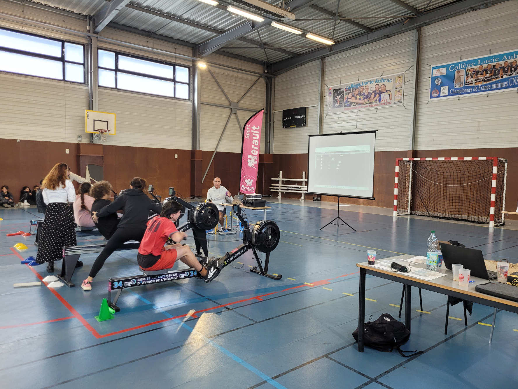 Mardi 04 novembre au matin, toutes les classes de 4ème du collège ont participé au challenge "Rame en 4ème" organisé par les professeurs d'EPS du collège en partenariat avec Hérault Sport et le club d'aviron de la ville de Béziers. Chaque classe a présenté une équipe filles, une équipe mixte et une équipe garçons et a réalisé 3 courses sous la forme de 8 relais de 250m pour parcourir un total de 2000m par course. Un classement a été établi à l'issue de ces rencontres en prenant en compte le temps total effectué sur l'ensemble des 3 courses. Cette année c'est la classe de 4èmeE qui a gagné le challenge suivie de la classe de 4C, deuxième et de la classe de 4F, 3ème. Tout s'est déroulé dans un climat d'entraide, de cohésion et de solidarité appréciés par l'ensemble des participants.